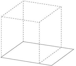 | 立体は、台紙の短辺を一辺とする立方体の範囲内で制作する。 下図を参照に、制作範囲を明らかにする直線をひくこと。 ![]() 手前 |
